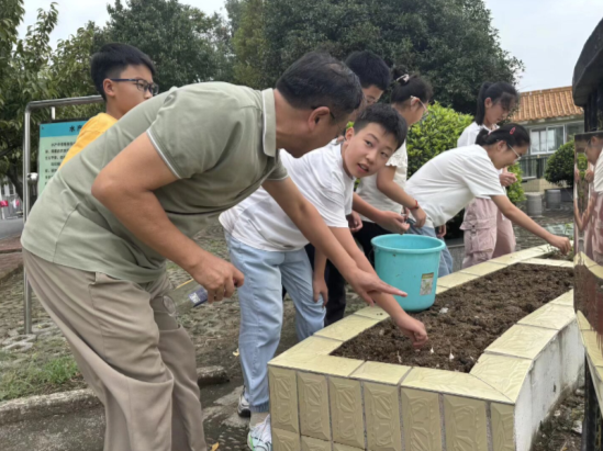 这个秋天,铜山中心小学的校园里一片欢声笑语,以“小手种秋天,劳动甜心间”为主题的秋季种植实践活动正式启动!同学们化身快乐的“小地主”,在关工委老教师、家长志愿者、科技辅导教师的共同陪伴下,奔向各自班级的劳动基地。二年级同学们围在导师身边,认真学习萝卜的播种门道,从选种到间距都听得格外仔细;一三四五年级的同学们则在家长导师的示范下,化身“播种小能手”,细致地撒下青菜、菠菜、香菜、芹菜、生菜的种子,再轻轻覆上泥土,像是在给种子盖被子;六年级同学们在导师的指导下,小心翼翼地划分“领地”,将一瓣瓣大蒜“安家”到松软的土壤里。各个班级,一场关于“谁的蔬菜长得棒”的友谊赛已经悄然开始。
