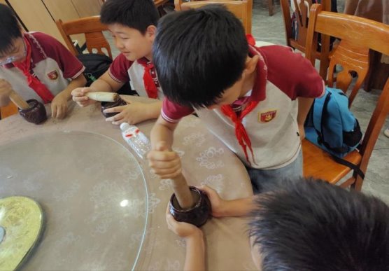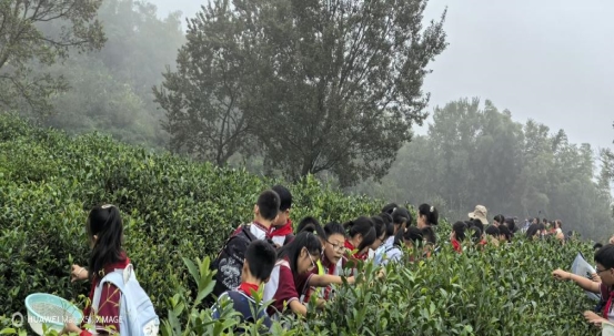 10月11日,南京市东吉湖小学关工委开展了一场以“茶文化”为主题的研学实践活动。五年级学生怀着好奇与期待,前往素有“南京小九寨”之称的江宁石塘人家。本次活动以“童心趣探石塘茶乡,巧手传承千年茶韵”为主题,让学生们在亲近自然、动手实践中,感受中华茶文化的深厚底蕴。同学们在研学导师的带领下,漫步于连绵的茶田间,亲手采摘含露的秋茶。大家不仅学习了茶叶的采摘技巧,更了解了茶树的生长习性与养护知识。在茶农的指导下,孩子们系上小围裙,深刻体会到“一茶一饭,当思来之不易”。在“花样茶叶蛋”环节中,大家敲蛋、煮茶、调味,品尝了自己动手制作的美味茶叶蛋;而在“一碗擂茶香”活动中,孩子们两人一组,配合擂制传统客家擂茶,体验千年茶食文化的魅力。