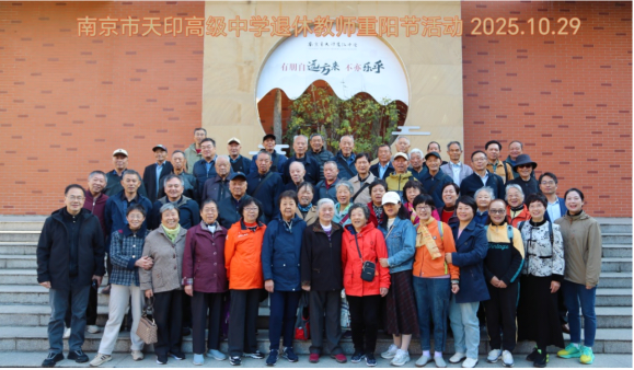 岁岁重阳暖,殷殷敬老情。为传承中华民族尊老、敬老、爱老的传统美德,向退休教师们致以节日的问候与崇高敬意,2025年10月29日,南京市天印高级中学精心策划了以“赏秋光?叙情谊?忆初心”为主题的重阳节系列活动,组织退休教师齐聚校园、参观新校区、走进南京溧水大金山国防教育基地,在温馨互动与红色研学中共度佳节,共享学校发展成果。
