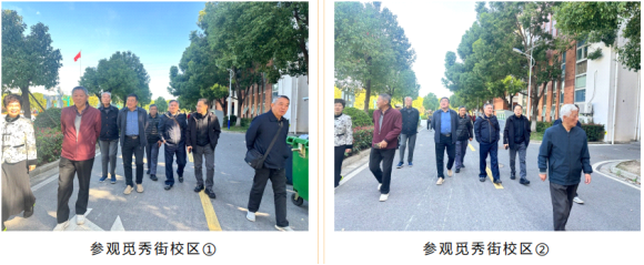 座谈会后,在张宁海书记、张昌军校长的陪同下,退休教师们前往天印高中觅秀街新校区参观。沿着整洁的校园步道,老师们先后走进现代化教学楼、设备齐全的理化生实验室、藏书丰富的图书馆及功能完善的运动场馆,每到一处都驻足观察、拍照留念。