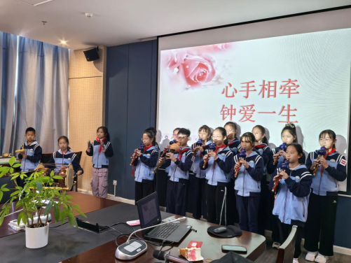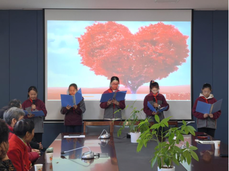 随后,诗朗诵《秋日里的那束光——献给敬爱的老师们》缓缓响起。孩子们用饱含深情的语调,将对退休教师的敬意融入字里行间,一字一句,皆是对“人类灵魂工程师”的礼赞,让现场温情满溢。