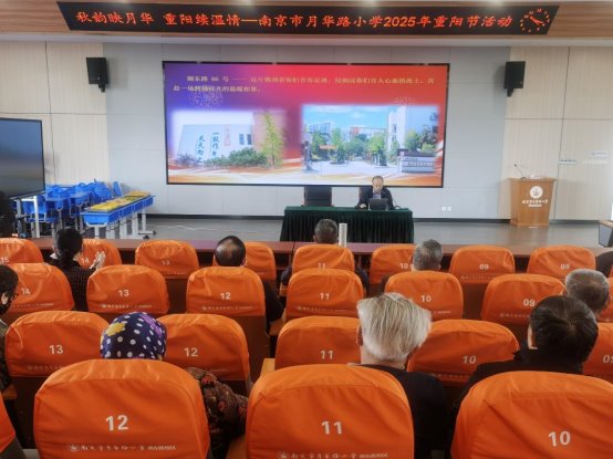 南京市月华路小学湖东路校区退教协分会于2025年11月2日在报告厅举行了庆祝重阳节活动。活动中,学校校长徐叶兵介绍了学校近年来取得的办学成果,之后带领老教师们参观了学校的校史馆、童心鼓韵馆、国旗中队专用室、东篱田园等特色场馆。老教师们欢聚一堂,畅谈学校喜人发展,交流各自退休生活,其乐融融!