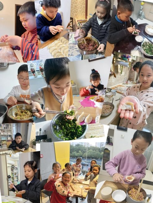 ? 巧手实践: “冬至巧手赛”将课堂延伸至家庭。在家长的指导下,孩子们化身“小厨神”,分组合作包饺子、搓汤圆。从笨拙的尝试到熟练的操作,孩子们体验了劳动的艰辛与快乐,更深刻体会到了分工协作的重要性。课后的“家庭团圆瞬间”照片展与感悟分享,让“孝亲敬老”的传统美德在热腾腾的烟火气中得到了最好的诠释。