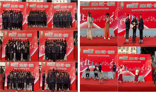 2025年12月30日下午,淳化中学操场热火朝天、歌声飞扬,初一年级与初二年级元旦文艺汇演在热烈的气氛中隆重举行。本次活动由学校德育处、关工委联合举办,以“青春绽放,2026我们一起成长”为主题,分为班歌竞演与班级才艺展示两大环节,充分展现了淳中学子们的蓬勃朝气与多元才华。