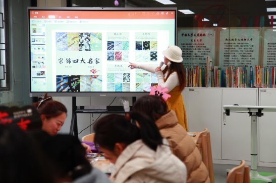 随后,非遗宋锦手工活动正式拉开帷幕。专业老师现场讲解宋锦的历史渊源与制作工艺,从纹样设计到丝线配色,从基础针法到成品成型,一步步将传统工艺与现代审美融合。