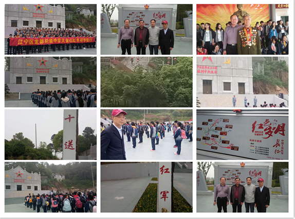 大金山国防园位于南京南郊、溧水之东、秦淮之源,与南京第二大人工湖东屏湖相偎相侬,湖光山色,景色旖旎。现为国家级青少年户外活动营地、江苏省全民国防教育基地和训练基地、江苏省青少年社会实践教育基地等。 园区主要内容长征广场;党史展览馆:抗战文化纪念墙 ;国防教育馆;生命安全体验馆;雷锋纪念馆;军事文化体验园;战场再现体验园等等。 10:10 分师生在解讲员护导员率领下,首先在长征广场聆听讲解员红军长征爬雪山、过草地,血战湘江、四渡赤水、强渡大渡河、飞夺泸定桥、巧渡金沙江等等残酷战斗场面,最后在会宁三军胜利会师,红军长征时有8万多人,长征结束只剩3万多人。随后在讲解员带领下宣誓仪式,朗颂毛泽东七律诗词《长征》最后初一、初二师生合影留念。