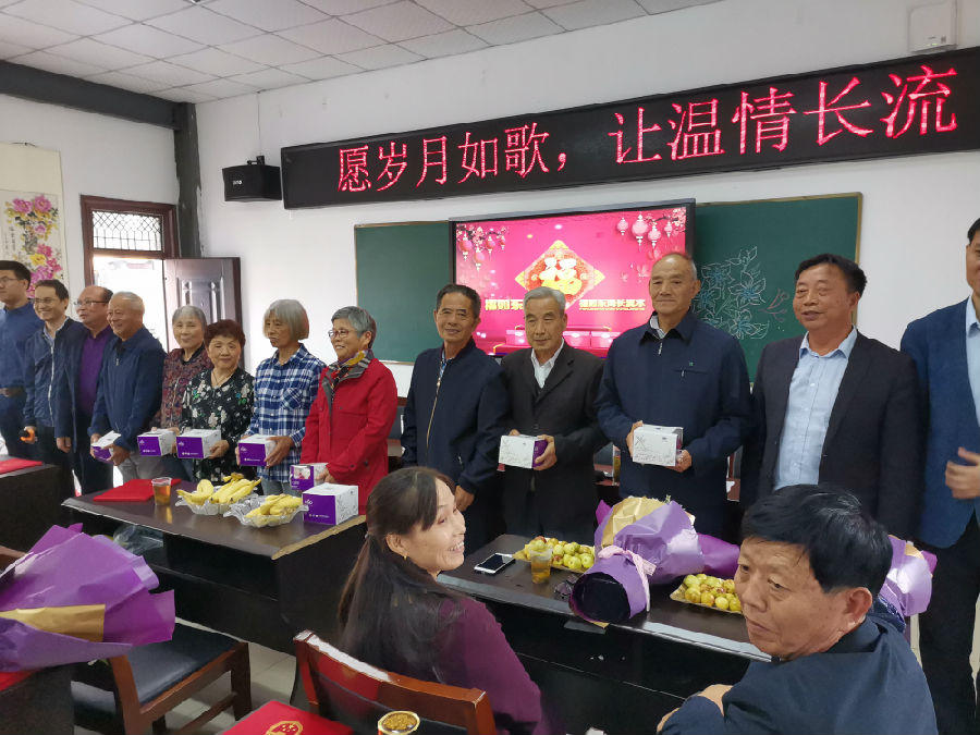 重阳节刚过,汤山小学举行了退休教师祝寿、钻石婚金婚庆祝活动。2019年10月11日上午,汤山小学20多位退休教师、30多位年轻教师齐聚在学校会议室,举行为侯国勤等8位80岁、朱根娣等8位70岁的老教师祝寿,为郗公豪钻石婚、侯尔校等7位金婚老教师庆祝活动。