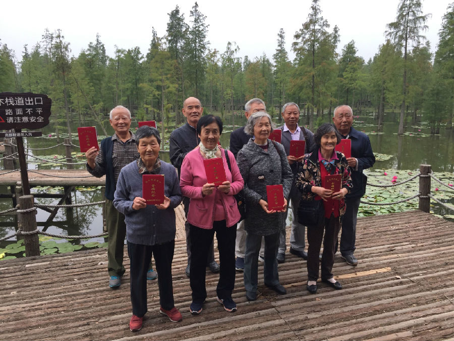 岁岁重阳,今又重阳。在麒麟小学主要领导的关心下,2019年10月11日上午,麒麟小学退教协组织退休教师到六合池杉湖湿地公园欢聚,在活动的间隙,我校退教协根据区退教协的工作要求,在会长陈光明的主持下,为70岁的葛武华,80岁的董仁松、杨兴河举办了整十生日祝寿活动,并为他们发放了礼金;接着又为陈光明、陈友军、陈顺英、平圣春等10位金婚的老教师发放了金婚纪念证书和礼品,在场的62位其余退休教师及5位校领导一起给他们送上了诚挚的祝福你,祝他们青春永在、全家幸福,并合唱了生日歌,他们感到不已,纷纷对学校和大家的关心表示感谢。“祝寿”“金婚庆祝”活动在欢快喜悦的气氛中结束。