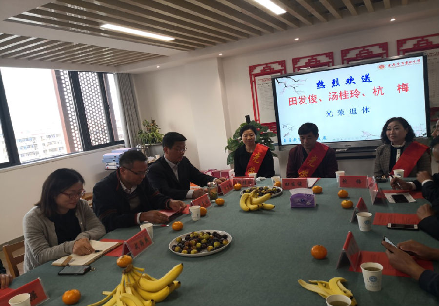 会后,全体参会人员与三位退休教职工一起合影留念,整个欢送会充满着温馨和谐,轻松愉悦的气氛。