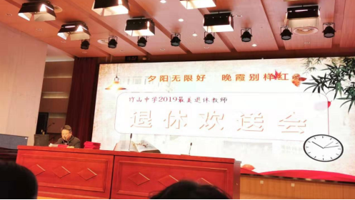 11月27日下午,虽然外面天气是冷雨绵绵,但竹山中学报告厅却暖意洋洋,学校行政和工会、退教协分会为今年退休的陈维凤教师、李亚萍教师、孙舜耕教师召开退休欢送会。欢送会由工会主席陈军主持,陈主席首先介绍3位教师教学经历,正是有许多像陈老师、李老师、孙老师这些老教师的辛勤奉献,才奠定了学校蓬勃发展的雄厚基础; 他们勤勤恳恳做事、踏踏实实做人的优良作风,永远值得我们效仿;他们的经验智慧永远值得我们学习;他们的道德品质将永远激励我们不断进取。“落红不是无情物,化作春泥更护花”,正是他们的爱岗敬业深深地影响着我们年轻的教师。接着请退休教师上台接受献花,退休教师代表李亚萍激动的发表退休感言,对学校表示感谢,并表示努力发挥余热,继续关心学校的发展!最后全体老师起立,掌声欢送退休老师离开会场。热烈的掌声祝福着退休教师们退休生活快乐美满!整个场面感人至深,很多老师热泪盈眶。