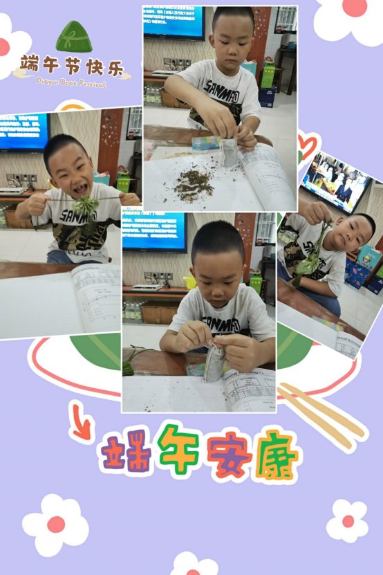 6月19日各班级召开了端午节主题班会,了解了端午节的由来、端午节的习俗和各种典故。在学校的号召下孩子们利用周末向家中长辈学习包粽子、缝制香囊或编制五色绳、蛋兜等,还有些孩子积极参加了社区组织的志愿服务。