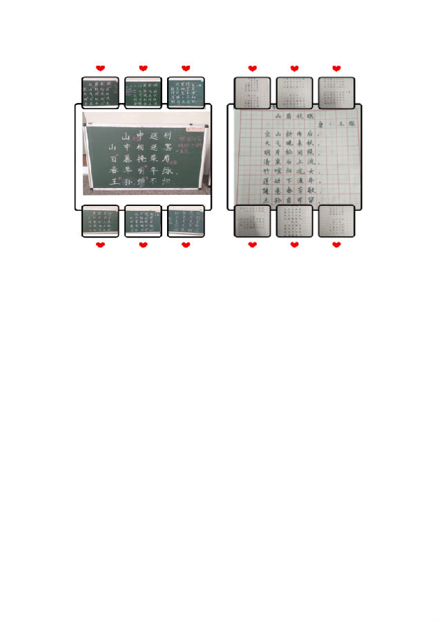 本学期近两个月,各位青年教师每周一准时交钢笔字或粉笔字作品,并接受周凡老师的批阅和点评。青年教师们态度端正,书写工整,较上学期有很大的进步。作品中有的刚劲有力,有的潇洒飘逸,有的大方得体,有的秀气灵美……为整洁的校园培添了一道亮丽的风景线。更为全校学生示范带了头,