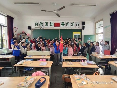 少先队的队旗是少先队组织的标志,队员们在队旗下茁壮成长。当右手五指并拢,高举过头顶时,一定有一种无法超越的情愫在胸中绽放,三、四年级的队员们用标准的队礼向队旗表达最崇高的敬意。