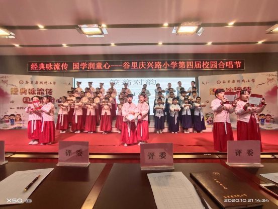 10月21日下午,庆兴路小学关工委成功举行了“经典咏流传,国学润童心”第四届校园艺术节合唱比赛。