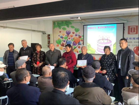 随后马勇校长、汪会长为70岁的徐文华、陈克琴两位老师祝寿。为王则恒、程海林、戴则林三位老园丁及夫人金婚纪念送去祝福和慰问礼金。