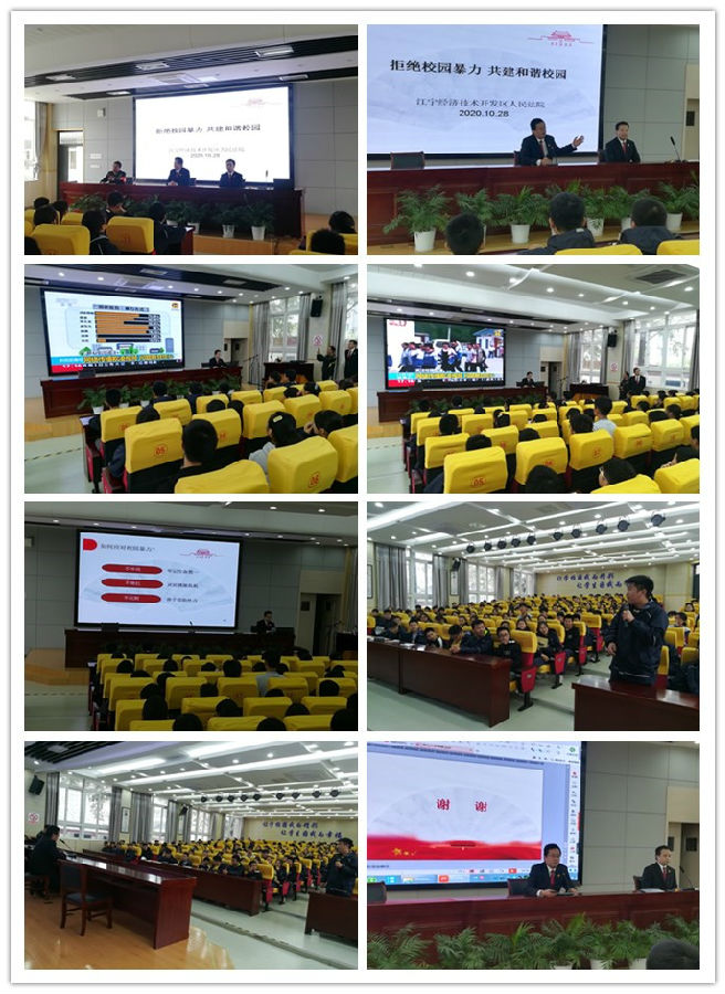 为进一步完善青少年法治教育工作机制,提高青少年法治教育效果,2020年7月,区委政法委、区司法局、区教育局、区关工委等四部门联合印发了《关于创办江宁区少年法学院的工作意见》。2020年10月28日,淳化中学根据该工作意见以及期初计划安排,邀请少年法学院宣讲团成员,江宁经济技术开发区人民法院闫立海和李棒两位法官走进淳化中学开展法治宣讲活动。