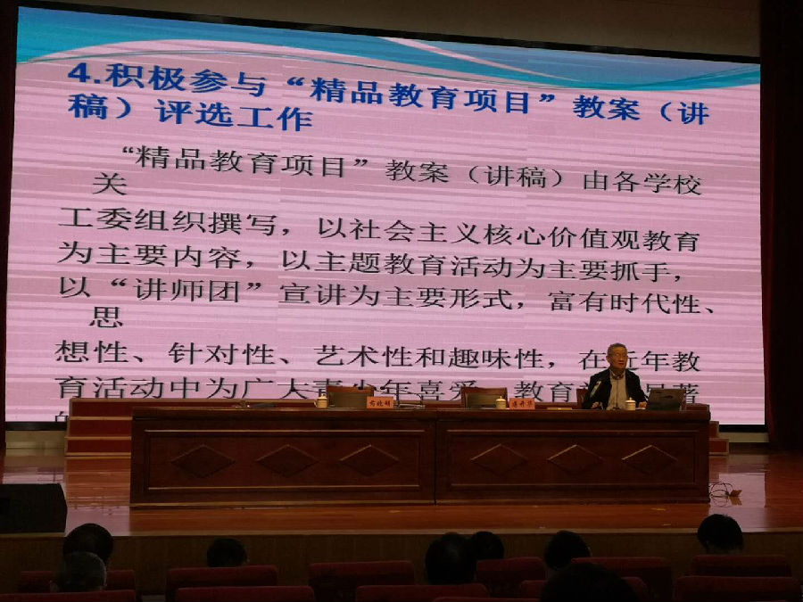 大会第二阶段为培训会。有江宁区教育系统关工委成员王世金同志就关工委工作特别是当前优质化试点工作的有关内容作了辅导讲座。