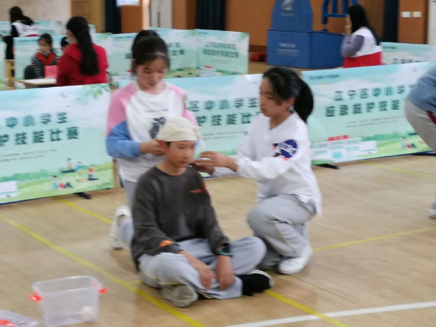 在学校领导、相关班主任和家长的大力支持与周晓老师的指导下,四位学生认真准备,积极训练。并结合比赛形式——理论+实操,每日午饭到保健室先互相提问理论知识,再进行实操训练,你帮我包扎我帮你指导,大家互相学习,收获颇丰。