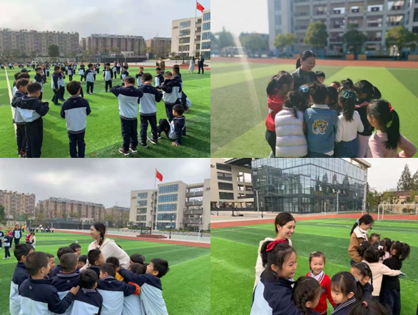 活动开始前,一年级同学在班主任和学校心育中心“阳光小屋”李老师的带领下来到操场,男生和女生分别围成圈。通过“大风吹”、“欢迎来我家”活动增加同学们的互动,为即将开始的心理健康教育活动做好准备。活动中同学们积极参与,用心体悟,在体验活动中掌握基本的倾听技巧。在活动开展时邀请班主任参与其中,便于班主任利用本次活动在日常的班级管理中促进学生的习惯养成,促进班主任和同学们之间的互动,增进师生交流。