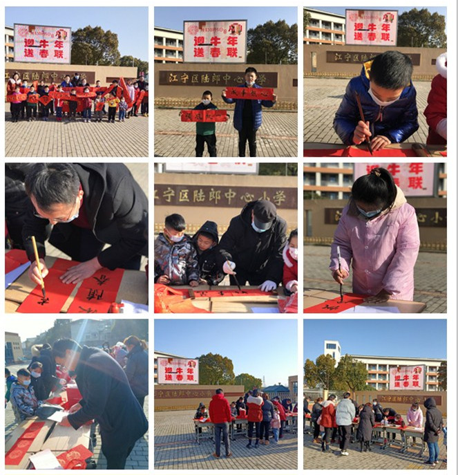 寒假已过一个星期,春节将至,年味儿渐浓。陆郎小学师生书法爱好者走到一起开展了“迎新春写春联,送春联送吉祥”活动。