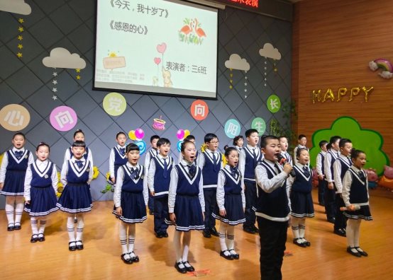 三(3)班的全体同学用稚嫩却饱含真情的歌声向成长路上不辞辛劳陪伴着他们的父母和老师表达感谢,更向伟大的祖国、伟大的中国共产党,说声谢谢!