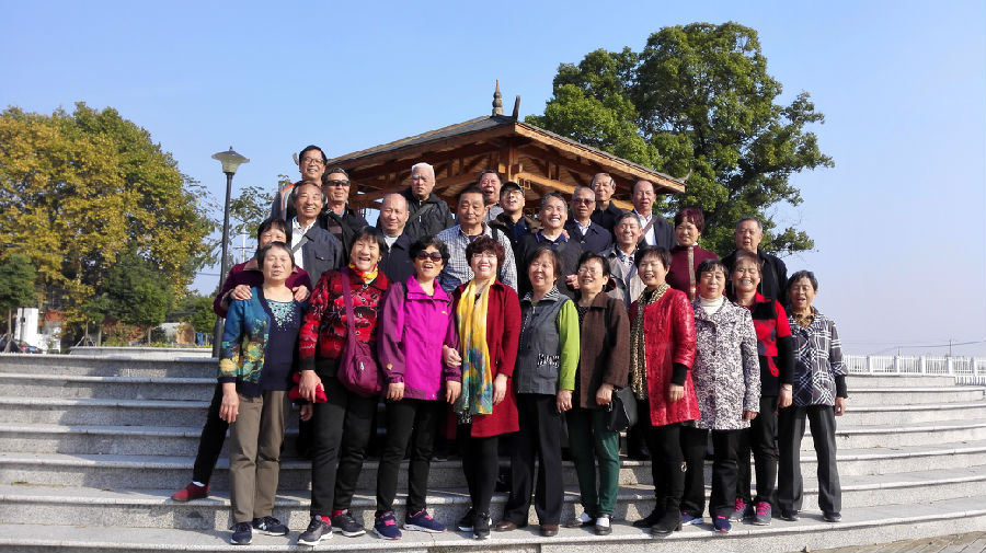 为了丰富离退休教职工的晚年生活,使他们老有所为,老有所乐,在学校大力支持和校工会的积极筹备和周密安排下, 2017年10月31日上午7:30整,我校组织所有离退休教师前往六合金牛湖和竹镇大泉湖参观游览。一路上,大家一边欣赏沿路风光,感叹城市建设的日新月异;一边引吭高歌,尽情歌唱,唱出对晚年生活的热爱和满足。上午,大家游览了金牛湖,美丽的自然风光,使大家流连忘返,醉在其中。