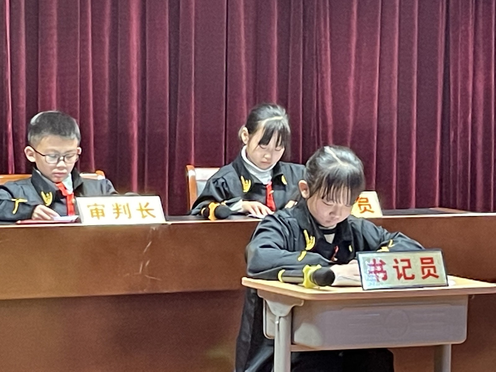 随着法槌敲响,庭审有序进行,从公诉人宣读起诉书、举证质证、法庭辩论、被告人最后陈述、当庭宣判到法庭教育;庭审现场紧凑有序,规范严谨,各环节环环相扣,“小法官”们各司其职,生动再现了人民法庭审理案件的全过程。
