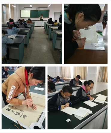 本次比赛项目分为硬笔书法和软笔书法。每班各有2名学生参加,在硬笔书法比赛中学生姿势正确,横竖撇捺点,一丝不苟,一张张纸上呈现出一个个字迹工整、优美流畅的字。在软笔书法比赛中同学们或坐或站,或悬腕或枕腕,行笔有提、按、顿、挫的变化,已具书法美感。