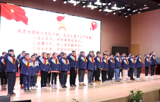 大队辅导员孙老师宣读新一届大队干部名单后,大队长巫辰轩带领全体大队委进行履职宣誓。响亮的誓言表明他们坚定的决心,相信他们在未来能以身作则,为大队部工作贡献自己的力量。