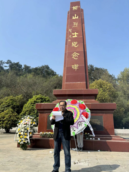 在庄严肃穆的横山烈士纪念碑下,铜小党、团、少先队员代表向烈士墓敬献花圈。