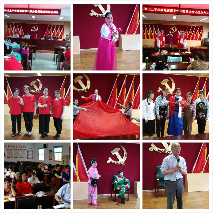 活动开始,戏曲班的常务副校长刘长旭同志对戏曲班的管理和教学工作作了总结,对优秀学员给予表杨,对各级领导的关心和支持表示感谢,并对下半年的工作提出了要求。接着73岁的退休老教师暨学员代表刘道春同志作了题为《我学习,我快乐,我健康》发言。他说,首先感谢区教育局领导和区退教协领导对退休老教师的关怀。湖熟街道社区教育中心携手龙都中小学退教协分会开设的黄梅戏班为我们退休老教师就近学唱黄梅戏提供了良好的平台,充实了我们退休老教师的文化美餐,让我们老有所学,老有所乐,老有所为,使我们的身心获得了健康。接下来,戏曲班的陈老师发言。她非常感谢龙都中小学分管领导的重视。点赞戏曲班全体学员的勤奋好学的态度以及学员和领导与她的密切配合精神,也感谢各级领导的关怀和支持。然后,中小学分管领导和社区先后讲话,表示全力关心和支持老年大学黄梅戏曲班的工作。接下来学员们在优美动听的黄梅戏《中状元----三联唱》拉开了学员们汇报演出的序幕。整台表演共18个节目。有独唱,有男女对唱,还有姐妹对唱等。整台演出台上唱音时而委婉绵绵;时而高亢激昂;时而如泣如诉,精彩纷呈。台下掌声不断,相机手机频频高举,拍下一个个精彩的镜头。最后,黄梅戏《绣红旗》和全体学员的大合唱《五月端阳》将汇报演出推向了高潮。
