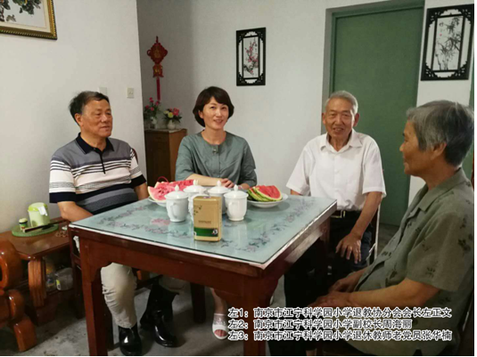 正值党的97周年生日之际,南京市江宁科学园小学党支部副书记昝晓芳、副校长周海丽、退教协会长左正文一行三人,于七月一日下午冒着倾盆大雨驱车(周海丽开着自己的车)走访慰问退休教师老党员张华楠、陈思平、傅劲草等四位同志。每到一家,为他们送去了党的关怀和温暖,送去了水果......和他(她)们拉家常,询问身体、家庭情况,亲切和谐。四位退休教师老党员一致表示,退休不退色,牢记党的关怀,积极参加支持退教协、关工委工作,作出自己应有的贡献。