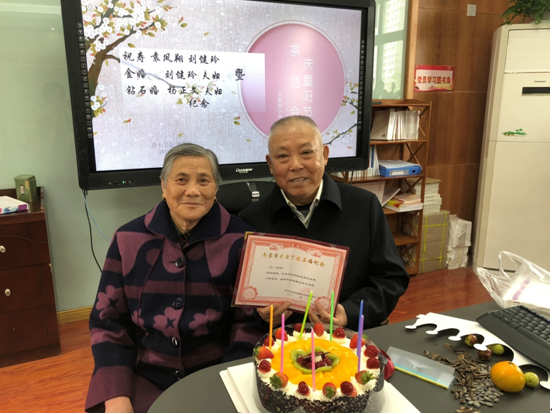 百家湖小学党政领导于2018年10月17日,参加由该校工会退教协举办的重阳节茶话会暨祝寿、金婚、钻石婚的纪念活动。并对有关教师表示祝贺和慰问