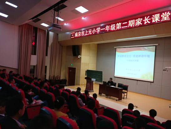 德育大课堂是上元小学进行德育课程体系建设的重要组成部分。家庭教育的力量是重要的教育力量。上元小学自2002年品德课程实验研究以来,一直保持着家校携手教育的优良传统,家长学校在增强学校与家庭的联系中起到了重要的作用。本学期在学校关工委、德育处的统筹安排下开设了一年级、三年级家长学校家长课堂共计八次。充分发挥家长学校的作用,采取多种形式普及家教知识,引导家长树立正确的家教观,掌握科学的教育方法,努力提高广大家长的素质和家庭教育水平,促进学生健康成长,真正形成家庭、学校、社会三结合的教育氛围。活动中,学校邀请到资深区语文学科带头人朱卉、区英语学科带头人冯雯、南京市德育带头人朱金娥为家长传授育儿知识和经验,讲述入学初期和三年级转折期孩子即将面临的学习生活现状,分析不同时期孩子的身心发展特点。使家长认识家庭教育的重要性,帮助家长树立正确的家庭教育观念,掌握科学的教育方法和技能。让家庭、学校、社会协调配合,共同促进学生身心健康发展。采用多种形式,丰富家长学校的活动,提高家长学校的效果。开辟多种渠道,夯实家长学校的管理,聘请校务家长委员会监督协助学。