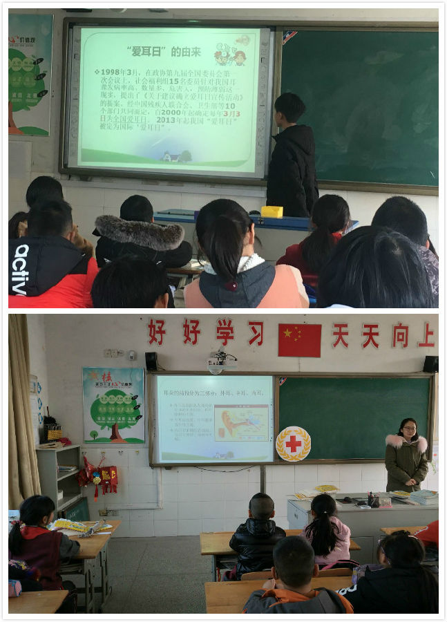 龙都小学关工委组织安排了校红十字会利用周一班会课时间宣传了爱耳日的来历、爱耳护耳知识。给学生讲解耳部养护保护听力的重要性。校医徐宏兰自制了ppt,亲自给低年级一个班宣讲,其余的班由班主任拷走ppt有班主任配合宣讲。通过这次活动的开展,普及了保护少年儿童听力健康的科学知识,提高了学生,爱耳护耳的意识,倡导了珍爱听力,健康快乐成长的理念。