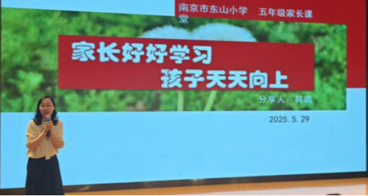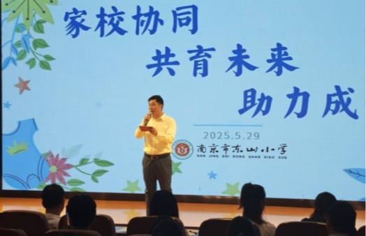 2025年5月29日晚,南京市东山小学关工委组织五年级家长学校活动在报告厅如期举行。本次活动邀请了南京市秦淮区未成年人成长指导中心负责人韩璐老师来校开展讲座。