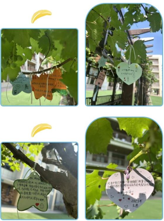 结合立夏节气,我们在葡萄长廊举行了“立夏友谊树,情满葡萄藤”活动。葡萄长廊的藤蔓下,彩色卡片随风轻舞,每一张都承载着友情的独家记忆,葡萄架也被师生称为“校园最温柔的一角”。“夸夸我的好朋友”活动中,有同学写下“谢谢你在我考砸时陪我吃冰淇淋”,也有害羞的男孩用漫画记录“和同桌一起破解数学题的快乐”。最动人的是一张匿名卡片:“虽然我们吵架了,但看到你挂的卡片,我想说‘对不起’。”